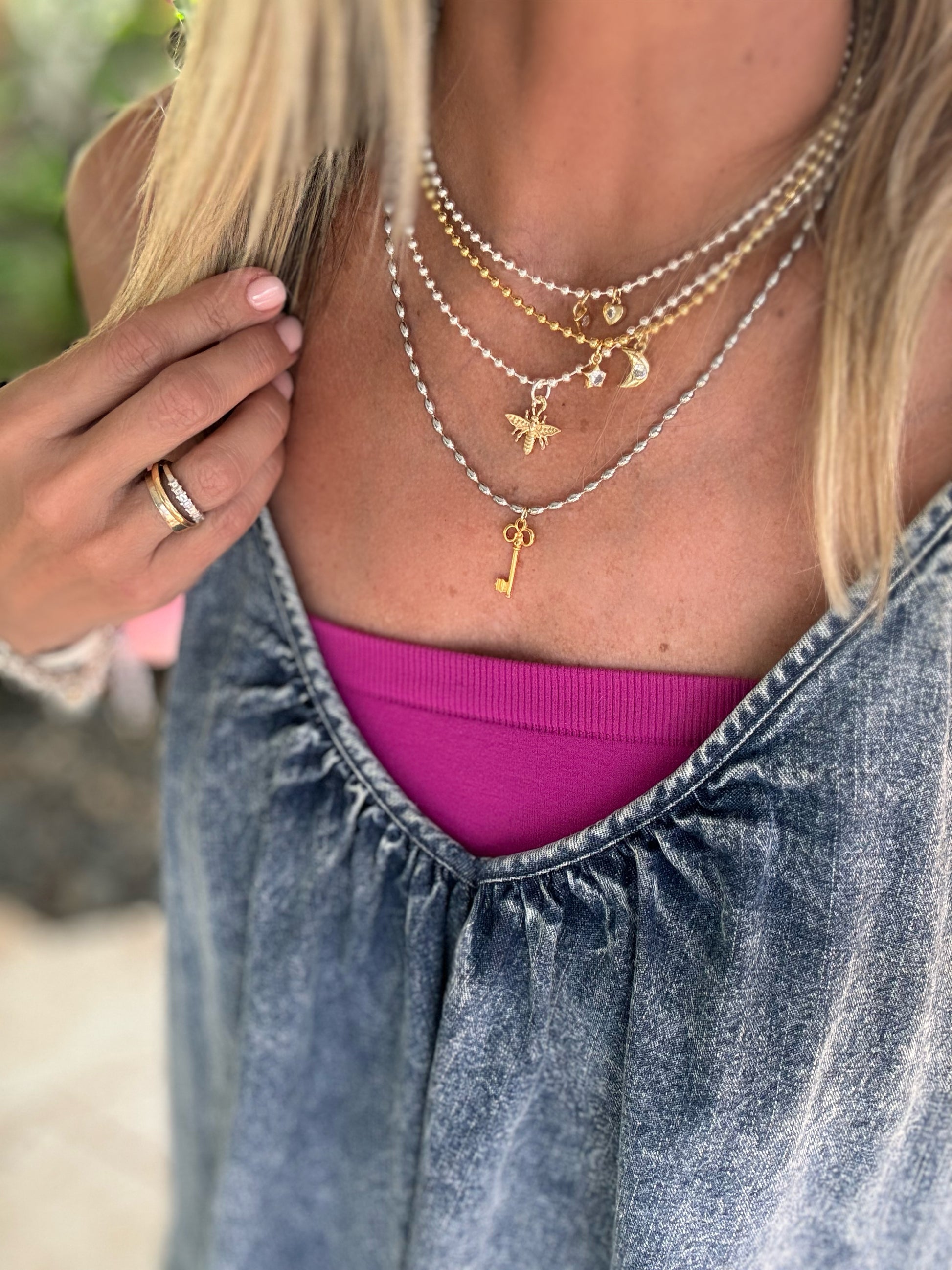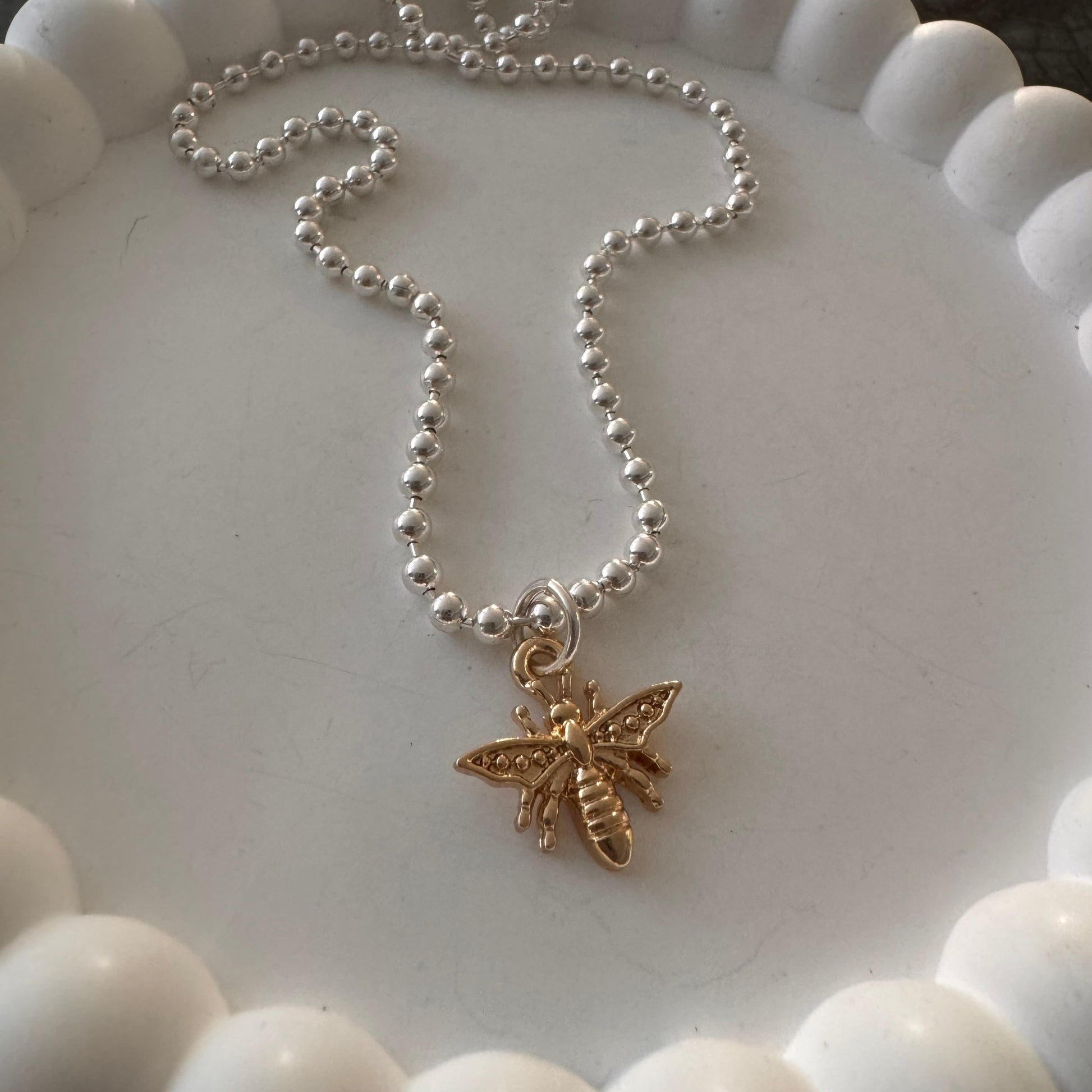 Silver 3mm ball chain with little gold bee charm. Choose your favorite length