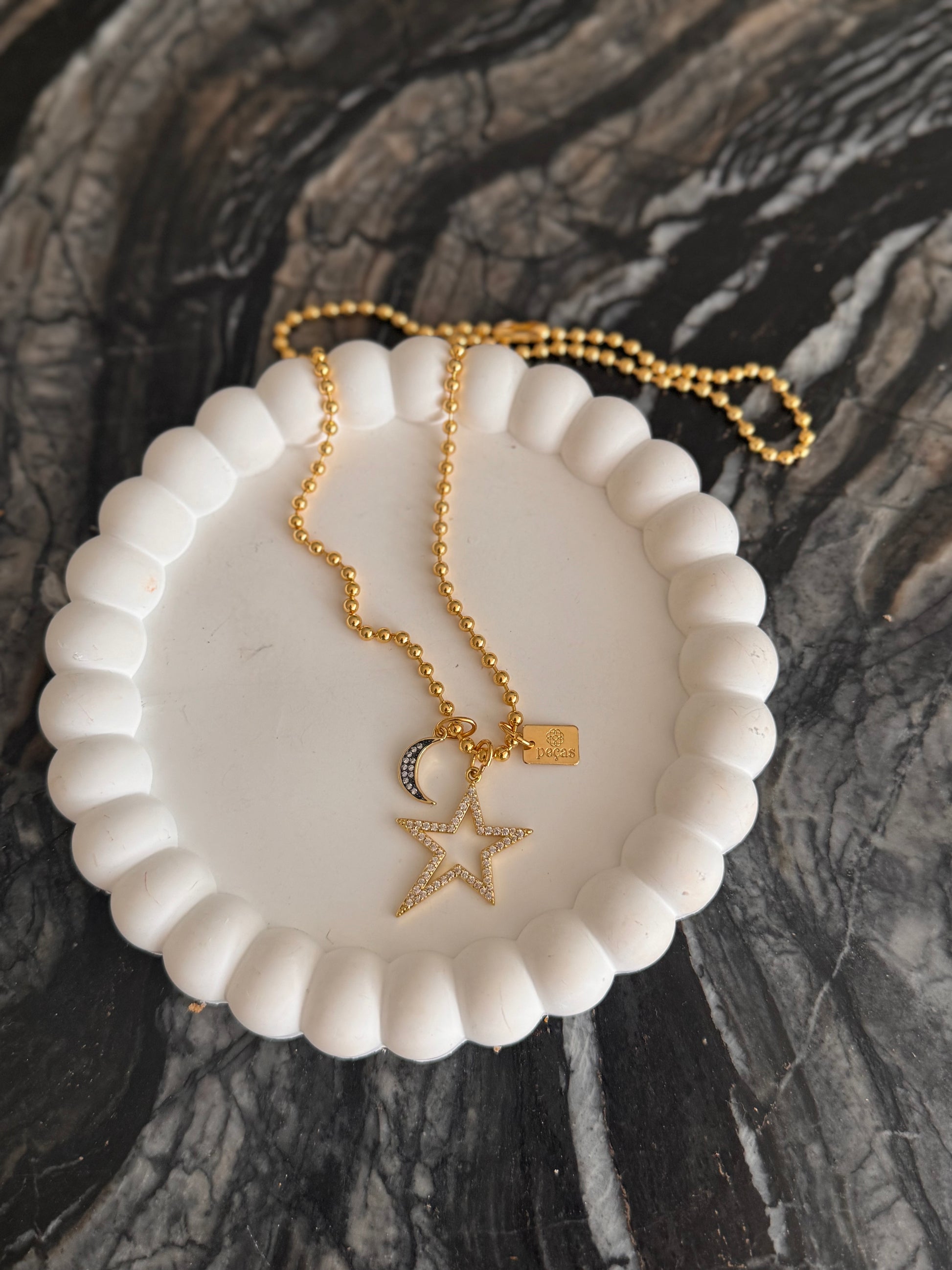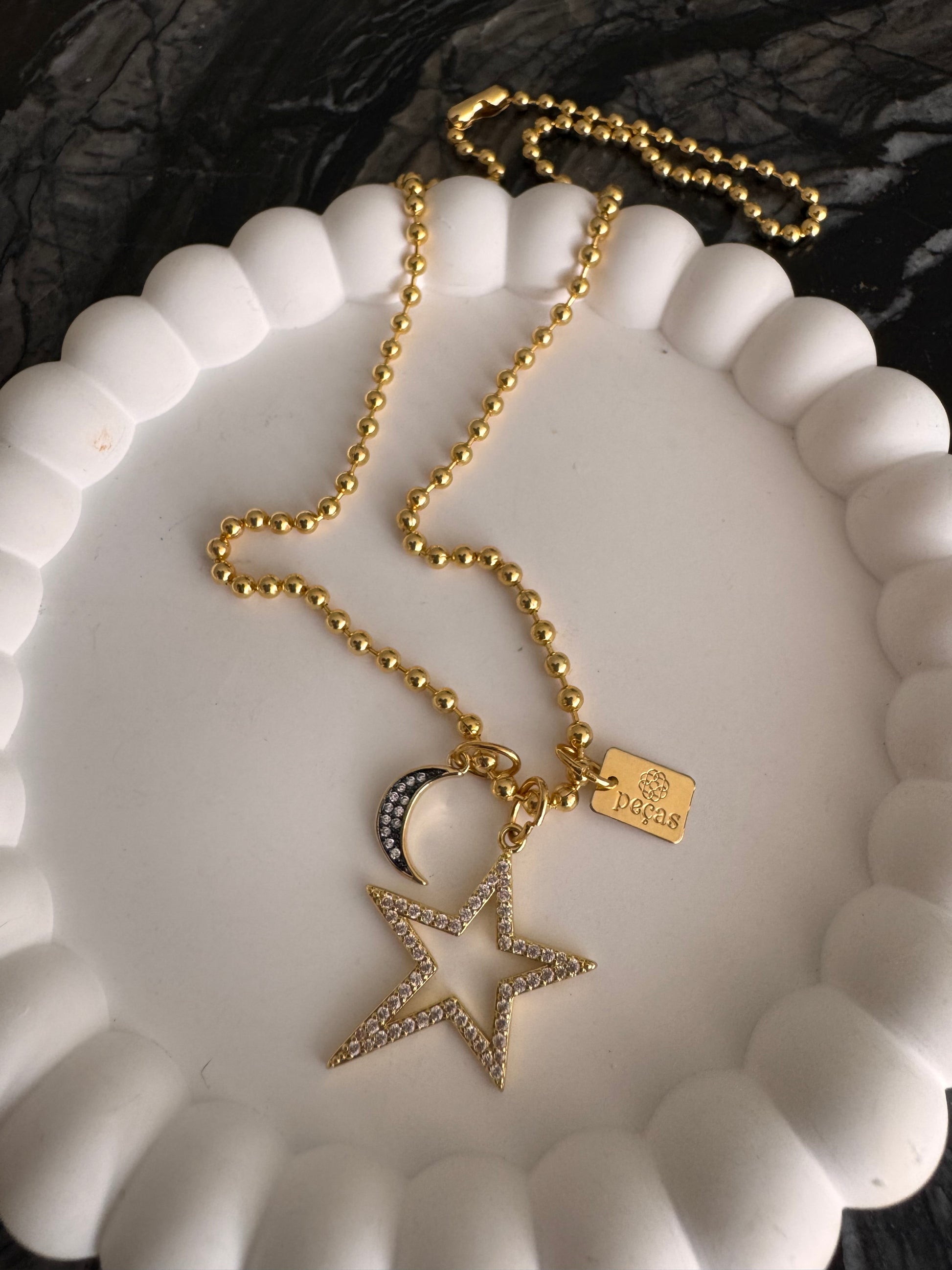 3mm gold ball chain. Length 17”